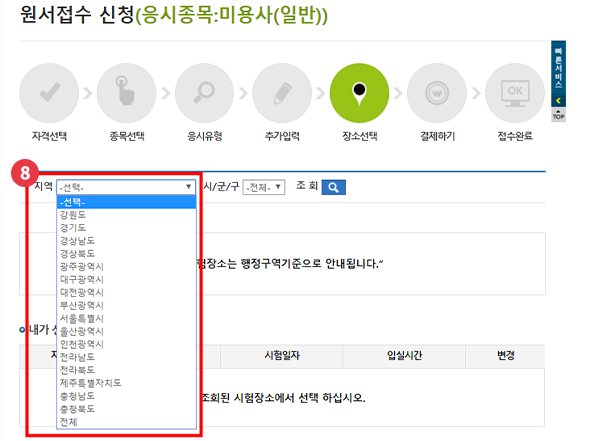 응시할 종목 입력 후 ‘종목검색’ 클릭